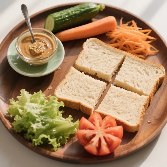 色彩繽紛的三明治,搭配香濃的芝麻醬,顏值與美味并存,孩子看到就會(huì)愛上!