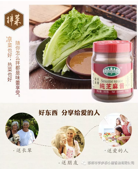 芝麻醬吃法多樣、可甜可咸,可以與主食搭配,拌面條、抹饅頭、摻在粥里等,不僅豐富了主食的美味,也提高了膳食的營養(yǎng)價值。