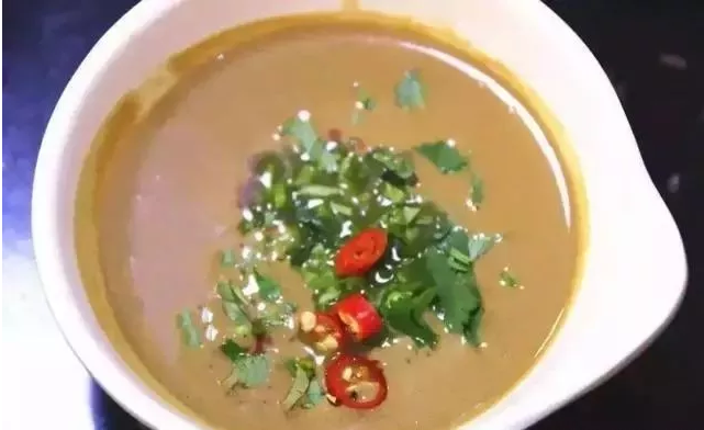 2、芝麻醬納入小盆內(nèi),分?jǐn)?shù)次注入紅湯,邊加邊順一個方向攪拌,至稀糊狀時(shí)加入韭花泥、生姜汁、鹽、味精、香油和紅辣椒油等充分?jǐn)嚢杈鶆蚣纯伞?/span>